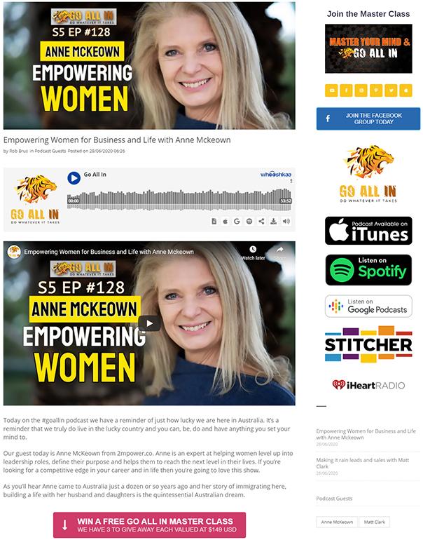 Rob is an expert at helping you to reach a wider audience with his appearance on your podcast. He will come ready to give away 3 x "Master Your Mind & Go All In" master classes to your audience valued at $447 USD. As the podcaster you'll also receive a copy of the Master Class for FREE.