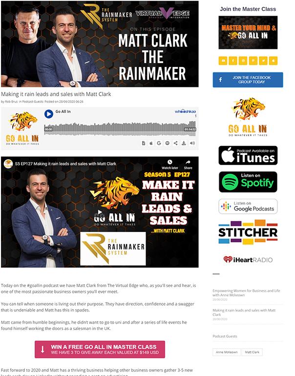 Once the podcast episode has been edited and is live let Rob and his team know and they will create a webpage on the Go All In website.